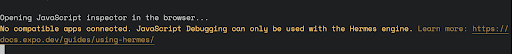 And even with Hermes enabled, Expo does a nice job opening Chrome DevTools for you but while you can see logs and inspect the code source you can't profile performance.