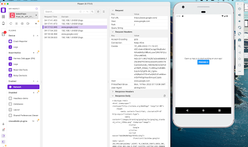 Lastly, we know we could use Flipper’s network extension. But Expo doesn’t come with Flipper installed in its default template. After following Expo's documentation on enabling Flipper. Side note, I had to create an Expo account to use their Expo Application Service and make a developer build for Android to finally build Android with the Flipper native module then install the APK locally which allowed me to run Expo dev.