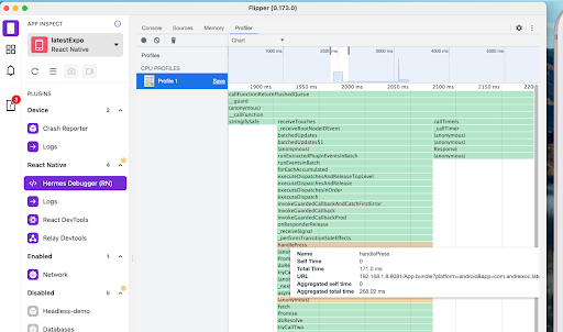 Using Flipper's Hermes Debugger panel we were also able to profile the app: